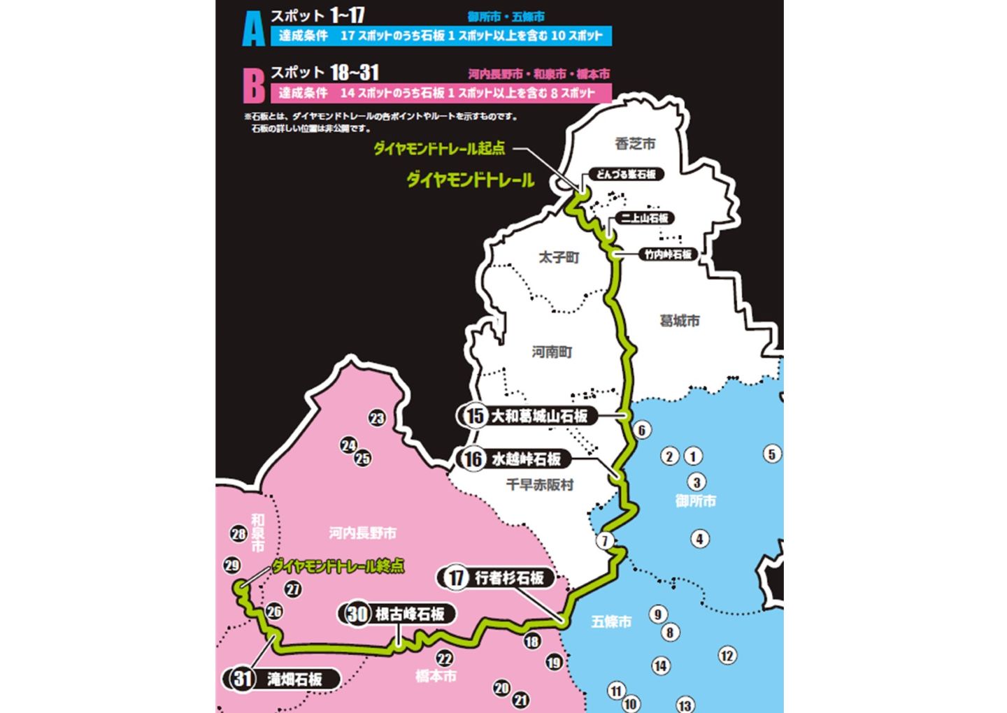 - 河内長野市、和泉市、奈良県御所市、五條市、和歌山県橋本市の31スポット
