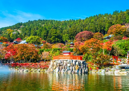 約8万坪の境内に咲き誇る桜やシャクナゲ、そして秋の紅葉はまさに圧巻で、年間を通じて参拝者の活気に満ち溢れた“今を生きる人”のための素敵な空間です。 -