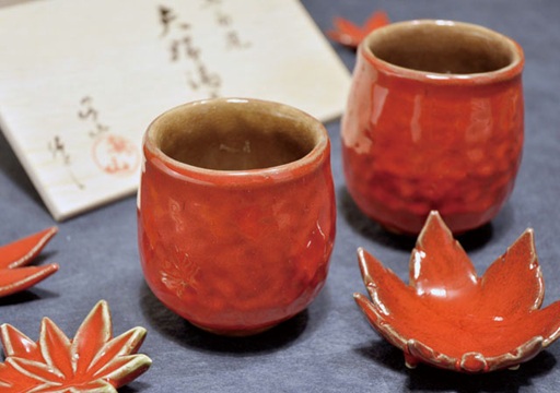 大正10年、秋深い山々に燃えるような紅葉に感銘を受けた先代が、その風景をそのまま焼物にしたいと、箕面窯を創設。箕面焼の特徴である独特の赤を表現するために、長い間試行錯誤を繰り返し、今の箕面焼が誕生しました。オリジナリティあふれる作品も多く、干支をかたどった土鈴などは、毎年全国から注文が来るほどです。