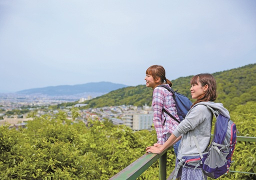 西江寺から北へ登っていったところにある聖天展望台からは、南を向くと大阪平野を一望でき、運が良ければ神戸まで眺望できます。また、北を向くと明治の森箕面国定公園の山々の連なりと瀧安寺を見ることができ、歴史と自然が調和した風景を堪能することができます。