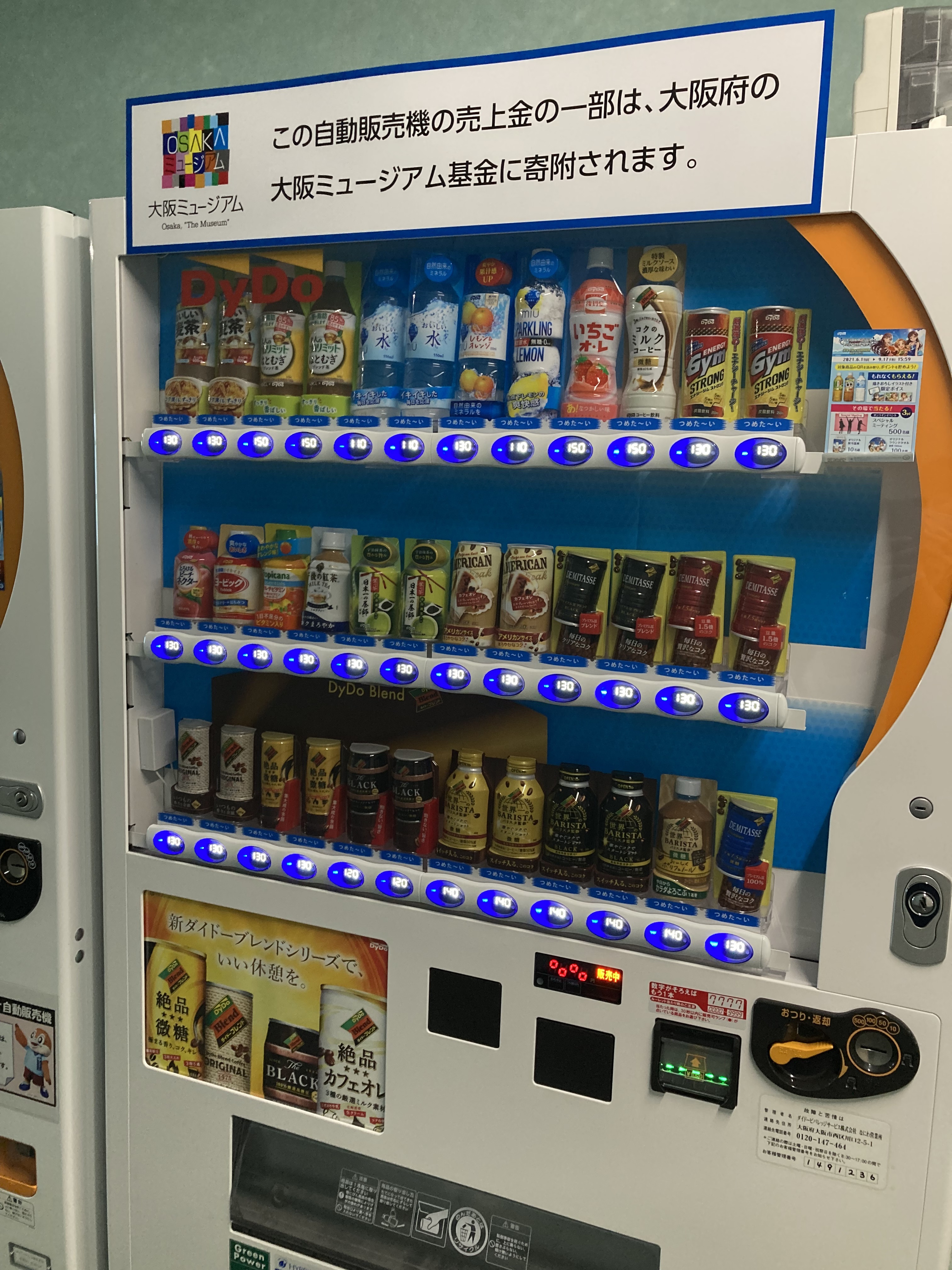 大阪府咲洲庁舎内に設置した自動販売機(大阪ミュージアム自動販売機)で販売する飲料の売上げの一部を、大阪ミュージアム基金にご寄附いただいています。